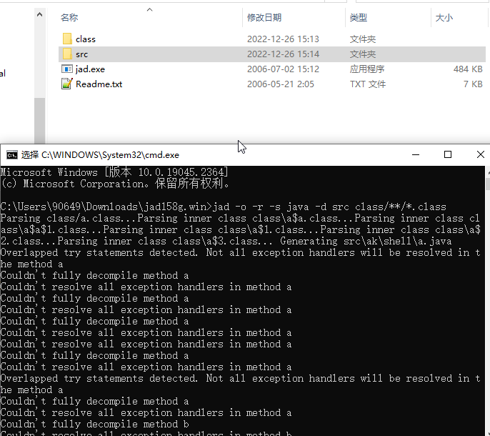 使用的命令:jad -o -r -s java -d src class/**/*.class